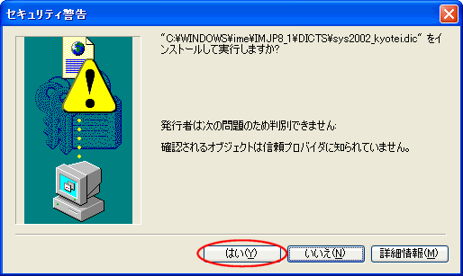 アップデートの場合は、「sys2002_kyotei.dic」を入れ換えるだけですが、作業の前には手順3の画面で「Microsoft