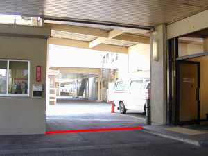 赤線(もちろん実際にはありません。)より 奥には絶対に入ってはいけません。 いつの間にか選手が中に入ってしまった 場合でも、そんなに距離はないので、 あきらめずに選手を呼んでみましょう。 出待ちの場合は、最終レース発走時まで シャッターは開けませんので、このあたりで 選手がタクシー等に乗ることになります。 |