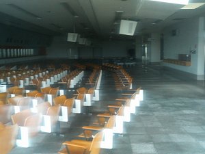 東側入口から見た投票所内 左に発売窓口があります。 |
