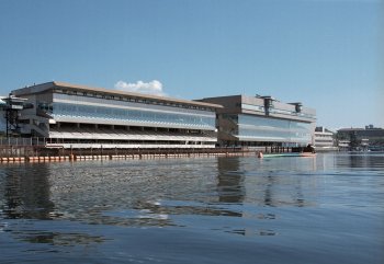 平成9年夏まで使用されていた、以前の選手宿舎「宮島水交会館」です。(昭和43年12月完成)