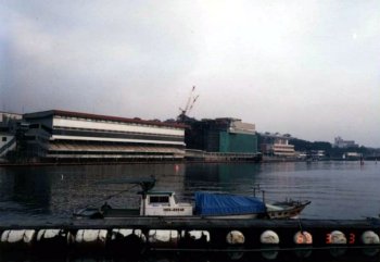 左下に写っているのは当時の事務所棟で、左写真はこの写真に写っているあたりからの撮影と思われます。