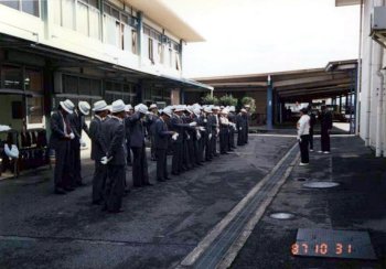 スーツ姿に白い帽子をかぶっているのが出場選手で、現在とは違った雰囲気です。