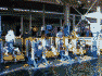 【揚降装置】 水面から装着場までは高低差があるためこのようなリフトを使います。 これはレース終了後で、手すきの選手が艇旗・艇番の交換、艇運などを手伝っています。(新人もベテランも!)