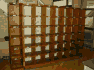 【着替え置き場】 洗濯の終わった衣服を選手別に入れる棚です。 控室まで行かずにここで着替えをすませてしまう選手も多いです。 登番を書いた紙を名札入れに差しています。 よって、カッパはもちろんのこと下着類まで全て登番の記入が義務づけられています。