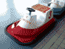 キッズエリアにある6艇揃ったボート型のバッテリーカーです。(乗車無料)