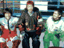 【4185藤原真也選手 初勝利!】 救助艇の上で記念撮影 左から4034西原明生選手、藤原選手、3859多羅尾達之選手 他にも1864安岐真人選手や3821菊原隆司選手、4036金田 諭選手なども水神祭に参加