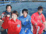 【4214林 祐介選手 初勝利!】 救助艇の上で記念撮影 左から(実は抜かれた)3259宮井良昌選手、林選手、3755吉村和也選手、3428吉岡政浩選手 同県の選手はあいにくレースの準備で参加できず、この節主力の3257田頭 実選手も参加してくれました