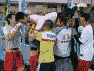 【4000松本博昭選手 地元初優勝!】 大勢の地元選手に抱えられての水神祭 手前左から4032加納直人選手、4302西野翔太選手、4328貞本拓哉選手 奥左から4126吉本玲緒選手、4205山口 剛選手、4163山崎裕司選手、4343村岡 賢選手