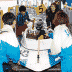 先輩選手に迎えられる抹香選手