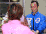 【2648池上哲二選手 引退】 優勝戦終了後には競技部内に地元選手や親族など本当にたくさんの人が集まり、花束が次々に贈られました(写真は海野選手からの贈呈シーン)
