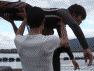 ファンや家族に見えるように配慮して、スタンドに近い場所での水神祭となりました