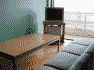 【談話スペース】 居室の奥には、それぞれこのようなスペースが用意されています。 テレビは地上波も映り、自由に使えるそうです。 テレビの下に冷蔵庫もあります。