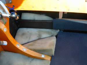 カウリング未装着の状態 座席の敷きゴムの下は、このようにスノコになっています。 |