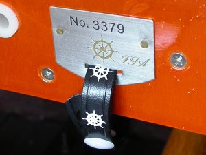 製造銘板 ボート名とはボート番号で、この写真では見えにくいですが、製造番号とともに刻印されています。 |