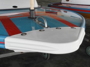 エアホール 転覆時にボート内部の空気が抜け、舳先を上にして沈むようにするためにつけられています。(舳先が水上に出るため、裏向きのままよりも他艇からの視認性が良くなる。) |