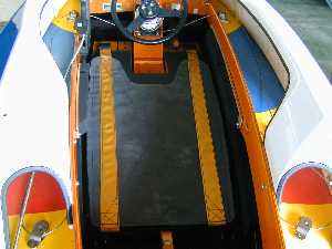 カウリングカバー(雨よけ) 雨が降り込まないような屋根であれば よいのですがそうもいかず、雨天時にはこのようなものをカウリングの上に被せます。(本番・展示艇のみ) |