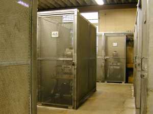厳重に施錠された部屋の中で、さらに1機ごとに分けられた鍵のかかるゲージに入れられて保管されています。 |