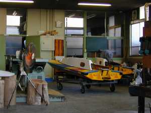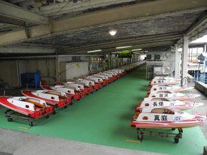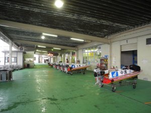 朝、選手が宿舎から到着する前に艇庫から出しておきます。 |