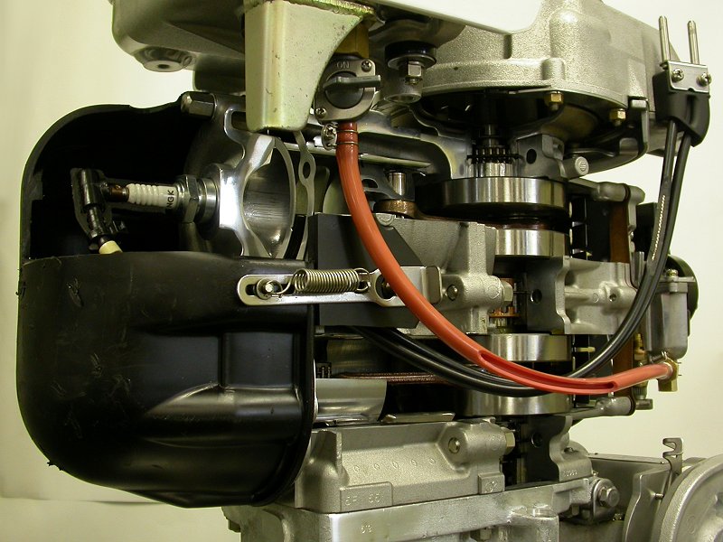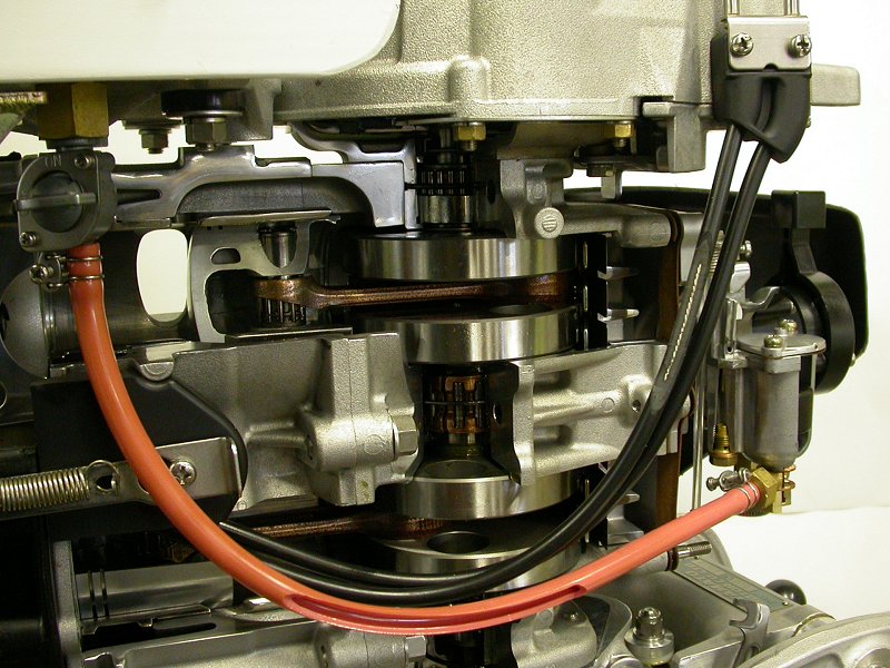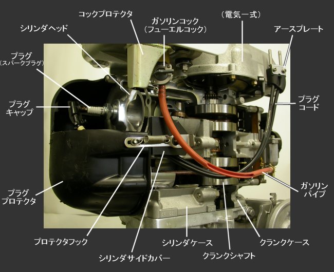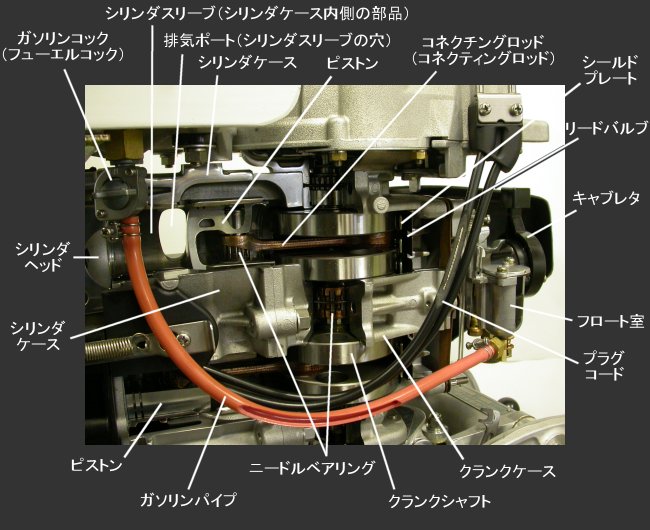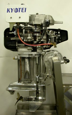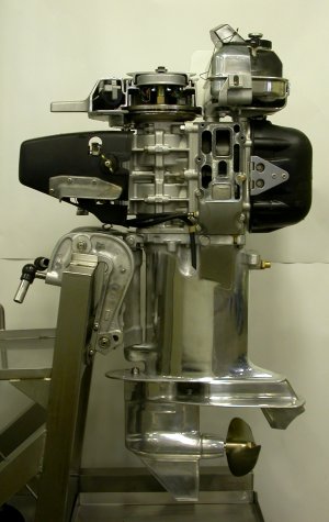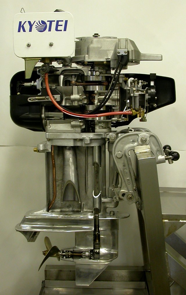 ボートレース宮島のボート・モーターの所有、整備を行っている株式会社永和の宮本整備士の手によるカットモデルで、実際に(手動で)動くよう工夫されています。