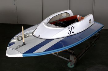 1994年頃に研究された、頭部保護用ロールバーの付いたシートに座って操縦するタイプのボートです。(H-T = High Tech)