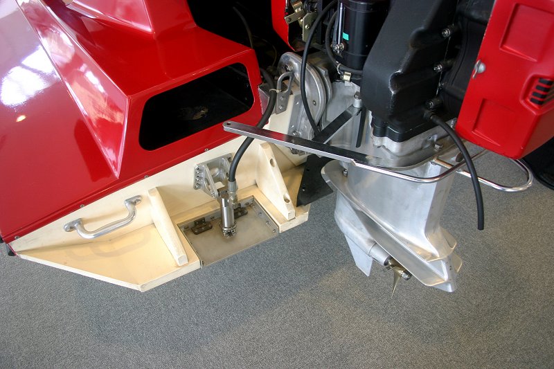 スターンエッジに組み込まれたトリムタブは左右2ヶ所が約20度下方向に動き、姿勢を制御します。