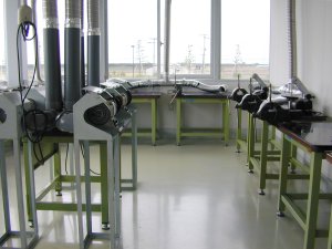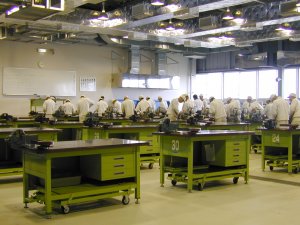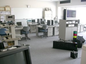 こちらは実務者養成員用で、パソコンやビデオ、大時計等の模型、操作卓があります。 |