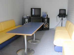居室入口付近には選手養成員用と同じく談話スペースがあります。 |