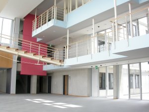 左がA棟、右が講堂です。 |