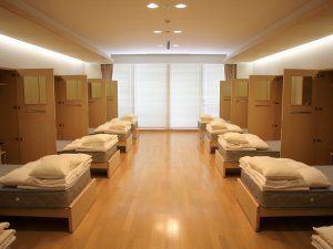 6人部屋で、以前は6つの個室に仕切られていましたが、より良い訓練を行うために敢えて仕切りが撤去されました。 |